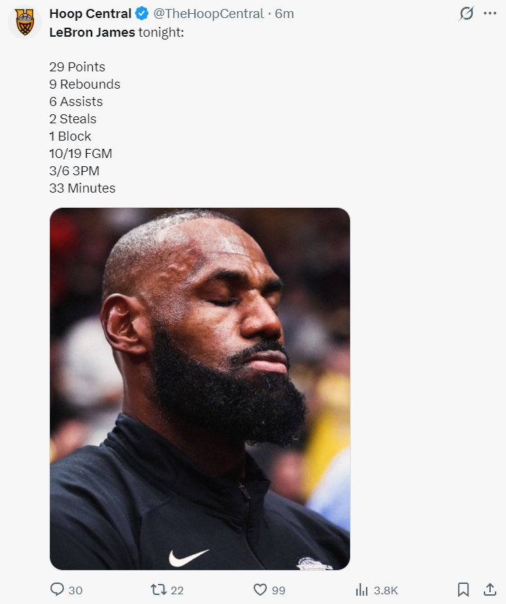 末节非常惨烈,詹姆斯依靠个人能力追到只差6分,东契奇登场防守崩盘又落后到15分,詹姆斯一人连拿5分续命,末节詹姆斯6中4拿到9分1篮板1抢断他真的竭尽全力,只可惜湖人防守实在是太烂了,三球两个三分命中后雷迪克放弃比赛。